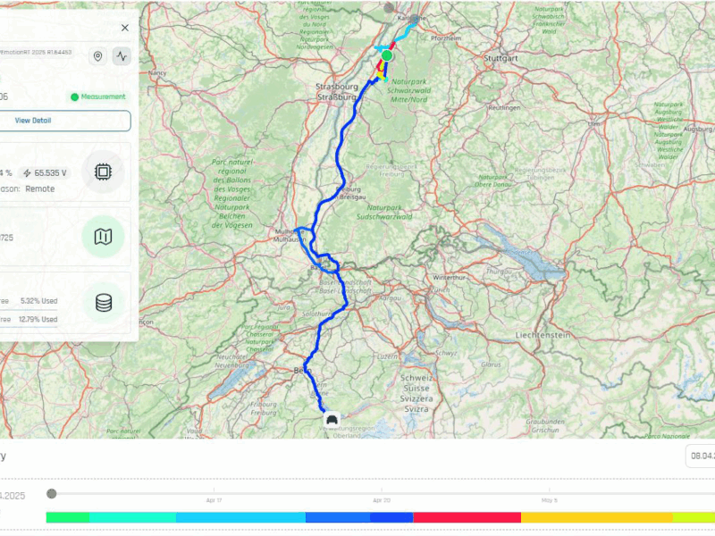 試験車両とデータロガーの最新位置情報を地図上に表示する機能です。この機能により、車両の駐車位置の確認や次のテストコースの計画を効率的に行えます。